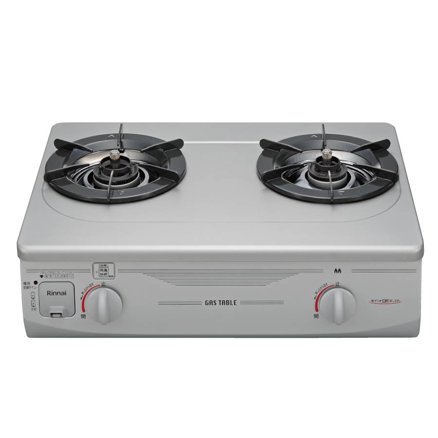 リンナイ ガステーブル(シルバー・シルバー) しる受け皿タイプ フッ素コート 2口コンロ グリル無し コンパクト幅約56cmタイプ プロパンガス 左強火力 【品番:RTS-336-2FTS(SL)A-L/LP】