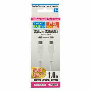 【オーム電機 OHM】オーム電機 AudioComm PD対応Type-Cケーブル USB-C to USB-C 1m ホワイト SMT-L10KCC-W