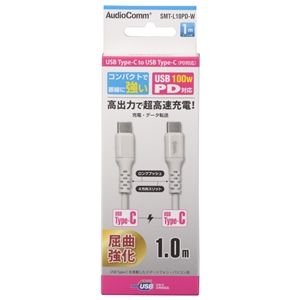 【オーム電機 OHM】オーム電機 AudioComm PD対応Type-Cケーブル USB-C to USB-C 1m ホワイト SMT-L10PD-W