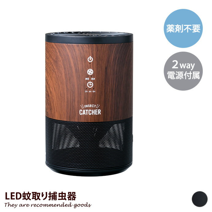 【クーポンで13%OFF!11/22 00:00~23:59限定!】蚊取り捕虫器 虫よけ 捕虫器 害虫駆除 インセクトキャッチャー 家電 デザイン 木目調 薬剤不要 蚊 LED USB ACアダプター 2way お手入れ簡単 インテリア ベビー ペット オフタイマー 高速 静音 幅13 室内 寝室