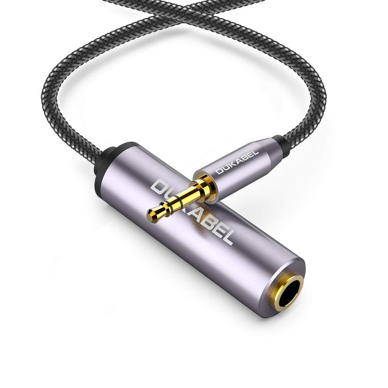 DuKabel 6.35mmステレオ標準プラグ(メス)-3.5mmステレオミニプラグ(オス) 6.35mm 3.5mm ステレオミニプラグ 変換 アダプター オーディオ変換ケーブル 二重編組クリスタルナイロン 24k金メッキ 30cm