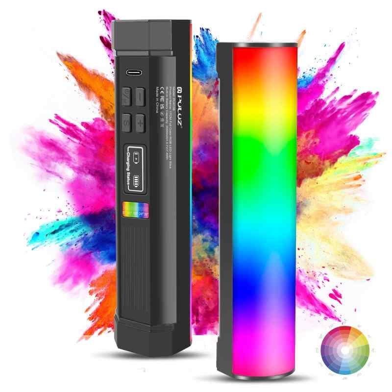 PULUZ 17cm 磁気 RGB LED スティック ライト、手に持つ撮影ライト フルカラー ビデオ ライト 2500K-9000K 調光可能/CRI≥95/2000mAH充電式バッテリー/自撮り/ブログ/TIK Tok/YouTube Video 用