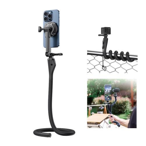 JJC マグネット スマホスタンド Magsafe対応 フレキシブルアーム 曲がる可 自撮り棒 スマホホルダー 撮影スタンド iPhone 16 15 14 13 12 & Android/Gopro HERO 12 11 10 9 DJI Osmo Action 4 3 2 アクションカメラ対応 カメラスタンド 撮影 自撮り 写真 Vlog Tik Tok YouTub
