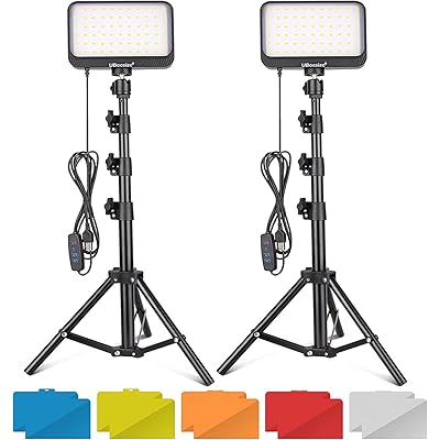 UBeesize LED撮影用ライト 2packsセット 8インチビデオライト 俯瞰撮影 三脚 カラーフィルター5色付き ledライト YouTube/Tik Tok/X/ins/生放送/ゲーム実況/照明/ビデオ撮影に対応 (35ー145CM) 適格請求書発行可