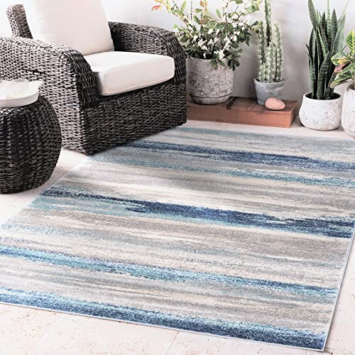 【中古】【未使用・未開封品】LUXE WEAVERS 7501 モダン抽象エリアラグ、ブルー/サイズ4x5