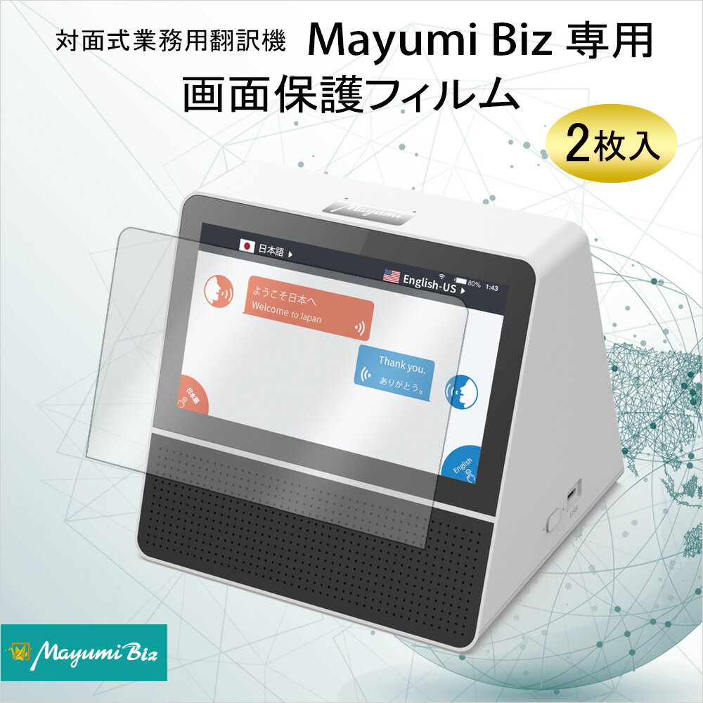 5%OFF!11/20〜11/27まで!Mayumi公式 対面式業務用翻訳機 Mayumi Biz 専用 保護フィルム 2枚入 硬度9H 汚れ防止 破損防止 指紋が付きにくい 透明感