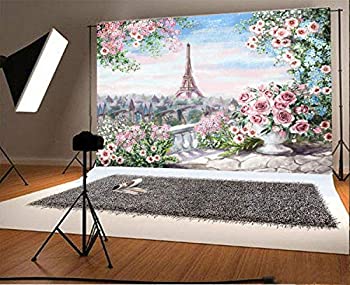 【中古】【輸入品・未使用】laeacco 7?x 5ftビニール写真背景ファンタジー水彩画花花ピンクトーンパリエッフェル塔風景背景for Children個人Portrait Backdrop