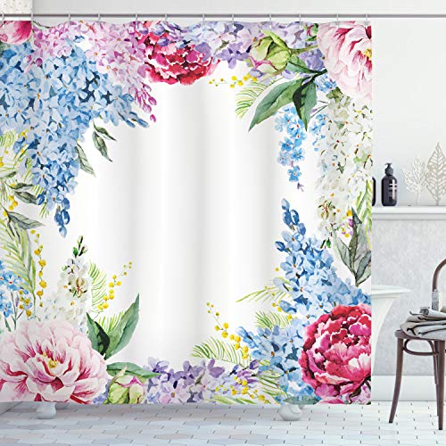 【中古】【未使用・未開封品】(180cm W By 190cm L, Multi 8) - Flower Shower Curtain by Ambesonne, Springtime Fragrance Garland with Bunch of Flowers Lilac Lavender R