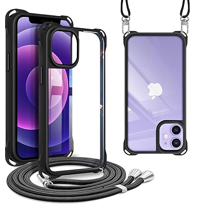 iPhone 12 ケース ショルダー 首掛け 肩掛け ストラップ付き iPhone12pro カバー 紐付き 斜めがけ 耐衝撃 4WAY 調節可能な ネック 縄掛け TPU 薄型 軽量 iPhone12/12pro スマホケース ブラック