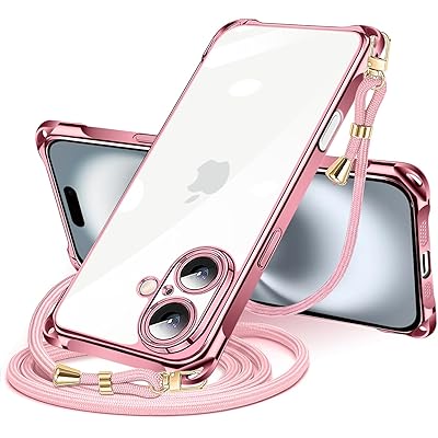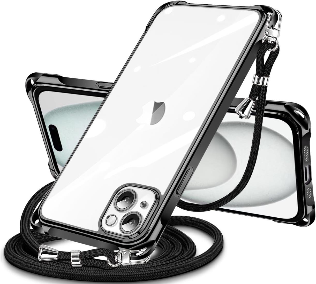 iPhone 16e 用 ケース クリア ショルダー ストラップ付き アイフォン16e 用 カバー 透明 縄掛け 肩掛け 斜めかけ TPU 耐衝撃 全面保護 薄型 韓国 可愛い iphone16e 用 スマホケース (6.1インチ)