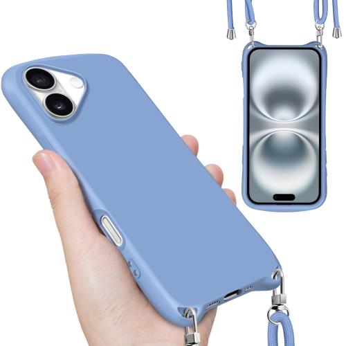 iPhone 16 用 ケース ショルダー ストラップ付き iPhone16 用 カバー 縄掛け 肩掛け 斜めかけ TPU シリコン 耐衝撃 指紋防止 全面保護 薄型 韓国 可愛い アイフォン16 用 6.1インチ スマホケース (ライトブルー)