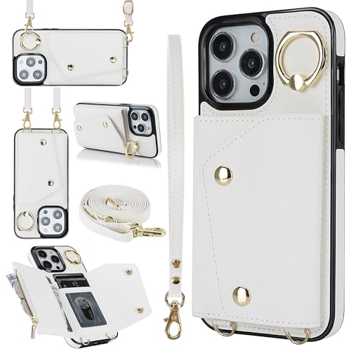 アイフォン16 Pro Maxケース 手帳型 PU革 カード収納 小銭入れ スマホケース iphone16 Pro Max 手帳型ケース 長ストラップ リング付き iphone 16 Pro Max 携帯カバー 肩がけ 首掛け 斜め掛け-ホワイト