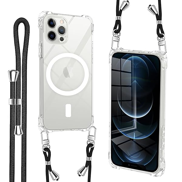 iPhone 13 Pro 用 ケース クリア magsafe対応 マグネット搭載 ショルダー ストラップ付 携帯カバー 耐衝撃 全面保護 アイフォン13 プロ 用 ソフトTPU 純透明 スマホケース 紐付き 肩がけ 首掛け 縄掛けケース 落下防止