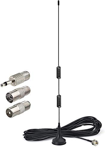 サムコス FMアンテナ FMラジオアンテナ 室内 室外 高感度 レシーバー Fタイプ オス コネクタ 75Ω マグネットベース ステレオ 信号 拡張ライン 3M+3変換アダプタSONY BOSE Sherwood Marantz YAMAHA ONKYO JVCなど対応用 (ブラック)