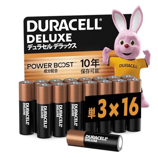 Duracell(デュラセル)アルカリ乾電池 より多くのパワーを生み出す「POWERBOOST成分」配合。※IEC2021年標準試験における平均値でのデュラセル・デラックスとの比較。 PC用マウス/キーボードにオススメ!より長持ちなデラックスシリーズ!!※POWERBOOST成分無しのデュラセル標準電池と比較 10年保存可能(製造日はお手元の商品パッケージ裏面をご確認ください。)※使用推奨期限においての保存条件:温度20プラスマイナス2°C相対湿度55プラスマイナス20% 液もれ防止設計