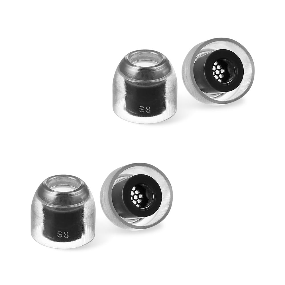 AZLA SednaEarfit Crystal 2 Standard [イヤーピース Sサイズ2ペア] 最高級プレミアムLSR素材採用 テーパード型構造 二重構造軸部強化 ハニカム構造ワックスガード搭載 細軸ノズルアダプター付属 高域【Evolving 3D Surround Sound- 最高級ドイツ製プレミアムLSR採用サラウンドサウンドイヤーピース】AZLAは、788人の外耳道分析と最高級ドイツ製プレミアムLSR素材採用によって、低圧迫と高い耐久性を高次元で両立させ、3Dサラウンドに特化した音響設計のイヤーピース「SednaEarfit Crystal」を2021年に発売し、大きな支持を得ました。『SednaEarfit Csytal 2』は、大ヒットモデルとなったSednaEarfit Crystalを発売後からの3年間の研究開発と知見、最新の独自技術を駆使して進化させたイヤーピースです。SednaEarfit Crystal 2は、前モデルと同じくイヤーピースとして求められる特性を高次元で有している最高級ドイツ製プレミアムLSR(リキッド・シリコン・ラバー)を採用。この素材は優れた耐熱性、酸化抵抗性、表面張力、低温柔軟性を有し、良好な誘電体特性等の固有特性を持つ合成/弾性の重合体で、柔らかく低圧迫、程よい摩擦抵抗と固定力による落下防止、かゆみ等に対しての低刺激性、そして高い耐久性を高次元で両立しています。【3Dサラウンドに特化した音響設計】SednaEarfit Crystal 2の音響面では、主にゲーム環境や3Dコンテンツを楽しむ環境を想定し、音の鮮明さと濃い音色を目的として設計されています。内部はホーン形状を採用し、広いサウンドステージと音の直進性による鮮明さを確保。また、一般的なベース帯域の強調ではなくパンチ力のある真の重低音を表現できるように設計しています。これにより音楽はもちろん、特にコンテンツ系において高い音響性能を発揮します。【二重構造設計と低圧迫と高遮音を両立するテーパード型構造設計採用】SednaEarfit Crystal 2では2つ以上の独自の金型を使用することにより、高い品質と堅牢性を確保する二重構造設計採用。これにより傘部のパーティングラインの除去、軸部をより強化して装着するイヤホンとのさらなる安定性向上を実現しています。フィッティング面では、耳に触れる部分に向かうほど厚みが薄くなる、独自のテーパード型構造設計を採用しています。一般的なイヤーピースの構造は、耳の内側部分と外側の厚みが同じ、または内側に向かうほど厚くなるため、強い圧迫感を与えます。これにより耳への持続的な圧迫と刺激が痛みを誘発し、さらに密閉性が低く遮音性に欠けてしまいます。SednaEarfit Crystal 2は通常では成形が非常に難しいテーパード型構造設計を採用していることで、低圧迫と高遮音性の両立を実現しています。【ダンパー機能を有する独自のハニカム構造コアレスワックスガード】理想的な音響のために開発したダンパー機能を有する独自のハニカム構造コアレスワックスガードも、LSR素材での一体成型を可能にしたことで搭載を実現しています。コアレスの一体成形で柔らかいため、ダンパーとして機能することによって圧迫感も減らします。そして独自のハニカム構造フィルターは、フィルターネットがイヤホンから出る音の伝達を邪魔することなく、効果的に異物の流入のみを防ぐことを可能にしています。ハニカム構造は様々な数学的テストを通じて図形間の余白と外郭ライン余白を最小化し、効果的に異物の流入率を減らしつつ音の伝達力を増加させる設計です。【より多くの方にベストフィッティングさせる6サイズ展開と細軸ノズルアダプター付属】SednaEarfit Crystal 2は、一般サイズのStandardタイプを採用しています。中間サイズを含めたSS/S/MS/M/ML/Lの計6サイズで、より多くの方にフィッティングしやすくしています。また、パッケージング構成は、単品サイズ2ペアと、非常に好評な中間サイズを含めた近接3サイズ(例:S/MS/M)を1ペアずつパッケージングした3ペアの2種類を採用。これにより、左右で耳道の大きさが異なるなどの際、微妙な調整をしやすくなります。傘部にはサイズ刻印があるため、混ざっても判別できるようになっています。そして、ノズルが細いタイプのイヤホンでも使用可能にする細軸ノズルアダプターが付属します。