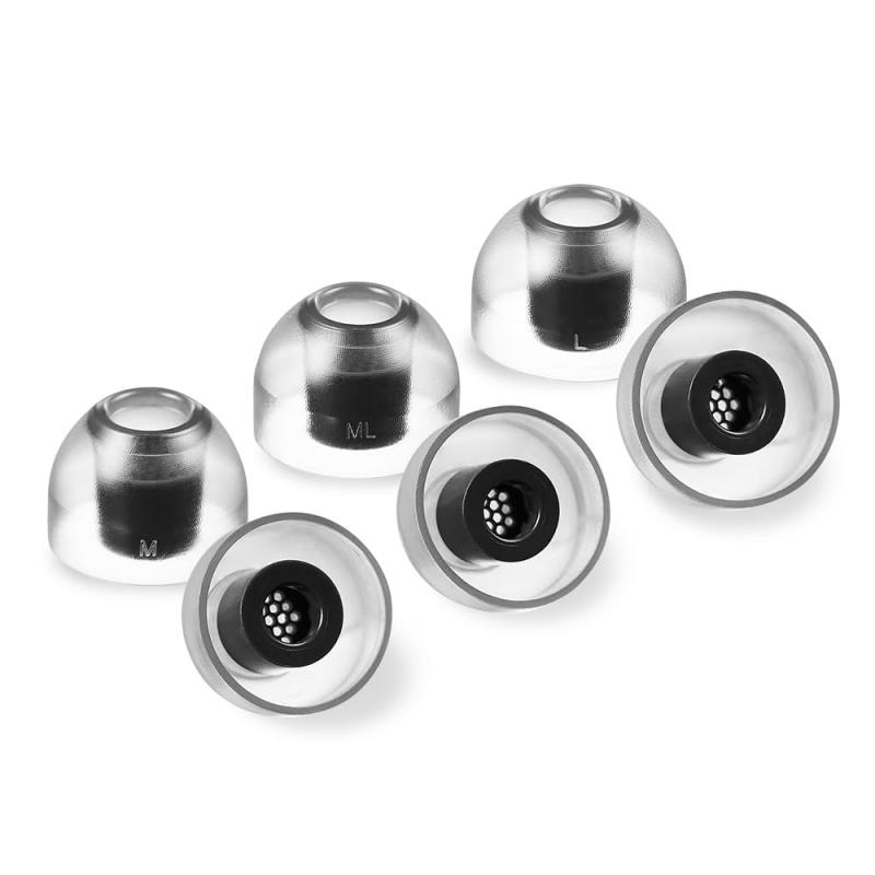 AZLA SednaEarfit Crystal 2 Standard [イヤーピース MLサイズ2ペア] 最高級プレミアムLSR素材採用 テーパード型構造 二重構造軸部強化 ハニカム構造ワックスガード搭載 細軸ノズルアダプター付属 高域【Evolving 3D Surround Sound- 最高級ドイツ製プレミアムLSR採用サラウンドサウンドイヤーピース】AZLAは、788人の外耳道分析と最高級ドイツ製プレミアムLSR素材採用によって、低圧迫と高い耐久性を高次元で両立させ、3Dサラウンドに特化した音響設計のイヤーピース「SednaEarfit Crystal」を2021年に発売し、大きな支持を得ました。『SednaEarfit Csytal 2』は、大ヒットモデルとなったSednaEarfit Crystalを発売後からの3年間の研究開発と知見、最新の独自技術を駆使して進化させたイヤーピースです。SednaEarfit Crystal 2は、前モデルと同じくイヤーピースとして求められる特性を高次元で有している最高級ドイツ製プレミアムLSR(リキッド・シリコン・ラバー)を採用。この素材は優れた耐熱性、酸化抵抗性、表面張力、低温柔軟性を有し、良好な誘電体特性等の固有特性を持つ合成/弾性の重合体で、柔らかく低圧迫、程よい摩擦抵抗と固定力による落下防止、かゆみ等に対しての低刺激性、そして高い耐久性を高次元で両立しています。【3Dサラウンドに特化した音響設計】SednaEarfit Crystal 2の音響面では、主にゲーム環境や3Dコンテンツを楽しむ環境を想定し、音の鮮明さと濃い音色を目的として設計されています。内部はホーン形状を採用し、広いサウンドステージと音の直進性による鮮明さを確保。また、一般的なベース帯域の強調ではなくパンチ力のある真の重低音を表現できるように設計しています。これにより音楽はもちろん、特にコンテンツ系において高い音響性能を発揮します。【二重構造設計と低圧迫と高遮音を両立するテーパード型構造設計採用】SednaEarfit Crystal 2では2つ以上の独自の金型を使用することにより、高い品質と堅牢性を確保する二重構造設計採用。これにより傘部のパーティングラインの除去、軸部をより強化して装着するイヤホンとのさらなる安定性向上を実現しています。フィッティング面では、耳に触れる部分に向かうほど厚みが薄くなる、独自のテーパード型構造設計を採用しています。一般的なイヤーピースの構造は、耳の内側部分と外側の厚みが同じ、または内側に向かうほど厚くなるため、強い圧迫感を与えます。これにより耳への持続的な圧迫と刺激が痛みを誘発し、さらに密閉性が低く遮音性に欠けてしまいます。SednaEarfit Crystal 2は通常では成形が非常に難しいテーパード型構造設計を採用していることで、低圧迫と高遮音性の両立を実現しています。【ダンパー機能を有する独自のハニカム構造コアレスワックスガード】理想的な音響のために開発したダンパー機能を有する独自のハニカム構造コアレスワックスガードも、LSR素材での一体成型を可能にしたことで搭載を実現しています。コアレスの一体成形で柔らかいため、ダンパーとして機能することによって圧迫感も減らします。そして独自のハニカム構造フィルターは、フィルターネットがイヤホンから出る音の伝達を邪魔することなく、効果的に異物の流入のみを防ぐことを可能にしています。ハニカム構造は様々な数学的テストを通じて図形間の余白と外郭ライン余白を最小化し、効果的に異物の流入率を減らしつつ音の伝達力を増加させる設計です。【より多くの方にベストフィッティングさせる6サイズ展開と細軸ノズルアダプター付属】SednaEarfit Crystal 2は、一般サイズのStandardタイプを採用しています。中間サイズを含めたSS/S/MS/M/ML/Lの計6サイズで、より多くの方にフィッティングしやすくしています。また、パッケージング構成は、単品サイズ2ペアと、非常に好評な中間サイズを含めた近接3サイズ(例:S/MS/M)を1ペアずつパッケージングした3ペアの2種類を採用。これにより、左右で耳道の大きさが異なるなどの際、微妙な調整をしやすくなります。傘部にはサイズ刻印があるため、混ざっても判別できるようになっています。そして、ノズルが細いタイプのイヤホンでも使用可能にする細軸ノズルアダプターが付属します。