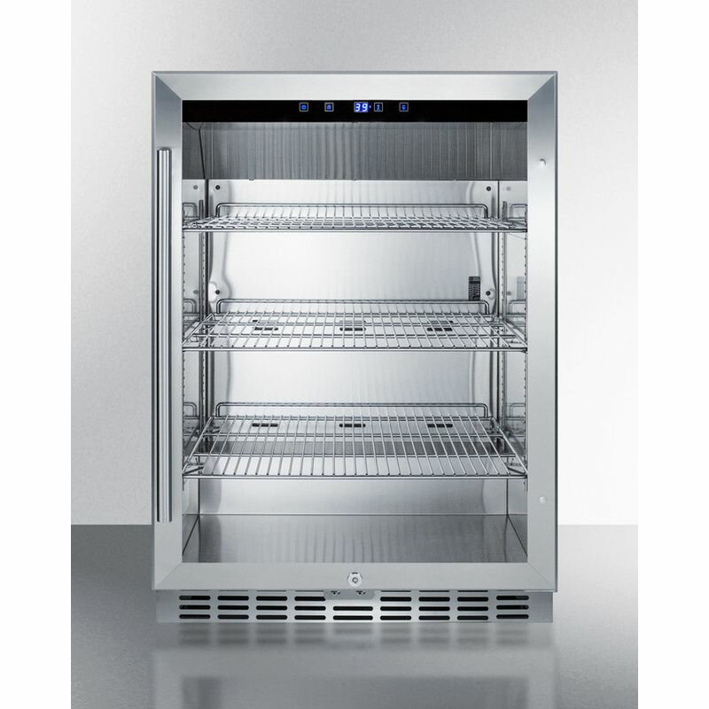 冷蔵庫 142L 屋外可 耐候性構造 ビルトイン可 幅59cm 棚3段 リバーシブル ガラスドア 鍵付き ステンレス Summit 24" Wide Outdoor Beverage Center SCR611GLOS 【代引不可】