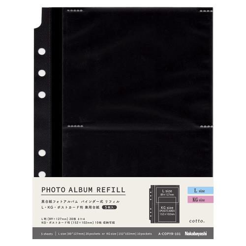 ナカバヤシ cotto. 黒台紙フォトアルバム用 補充台紙 6穴・バインダー式/L・KG判2段ポケット台紙 5枚入 A-COPYR-101 ブラック