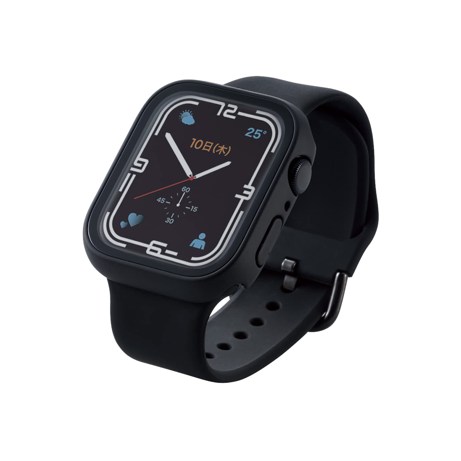 エレコム Apple Watch (アップルウォッチ) ケース カバー 45mm [Apple Watch 8 7 対応] フルカバーケース プレミアムガラス アンチグレア 反射防止 ブラック AW-21AFCGMBK