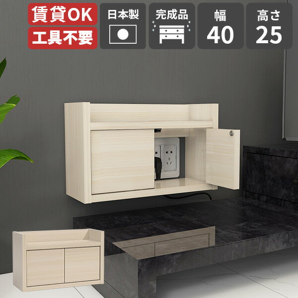 ウォールシェルフ 石膏ボード 賃貸 wifiルーター収納 扉付き収納 配線カバー コンセント隠し おしゃれ 配線隠し ルーター収納ボックス 日本製 完成品 飾り棚 ディスプレイシェルフ シェルフ キッチン ルーター収納 ウォールラック 【WallRouterbox 4025 whitewood】 ★