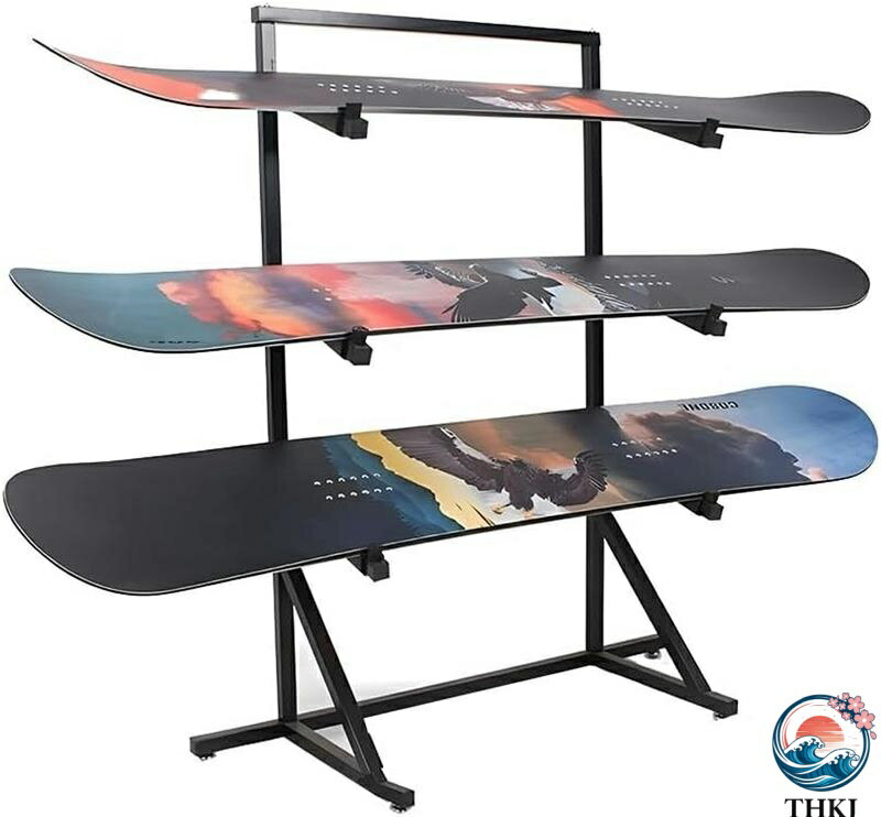 【期間限定5倍ポイント!】3段メタルスノーボード収納ラック、スキー/スケートボード/スクーター用スタンド、ホームジム整理ホルダー、ガレージ/ショップ用フロアディスプレイスタンド(ブラック 95x37.5x117 cm)