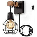 Lightess ブラケットライト コンセント式 ウォールライト 北欧 レトロ 壁掛け照明 調光可能 ケージクランプ ビンテージ調 工事不要 2way取り付け 壁取付ランプ アンティーク調 木材壁ライト 階段照明 カフェ 寝室 居間 インテリア 廊下 玄関ライト E26口金*1灯(電球別売