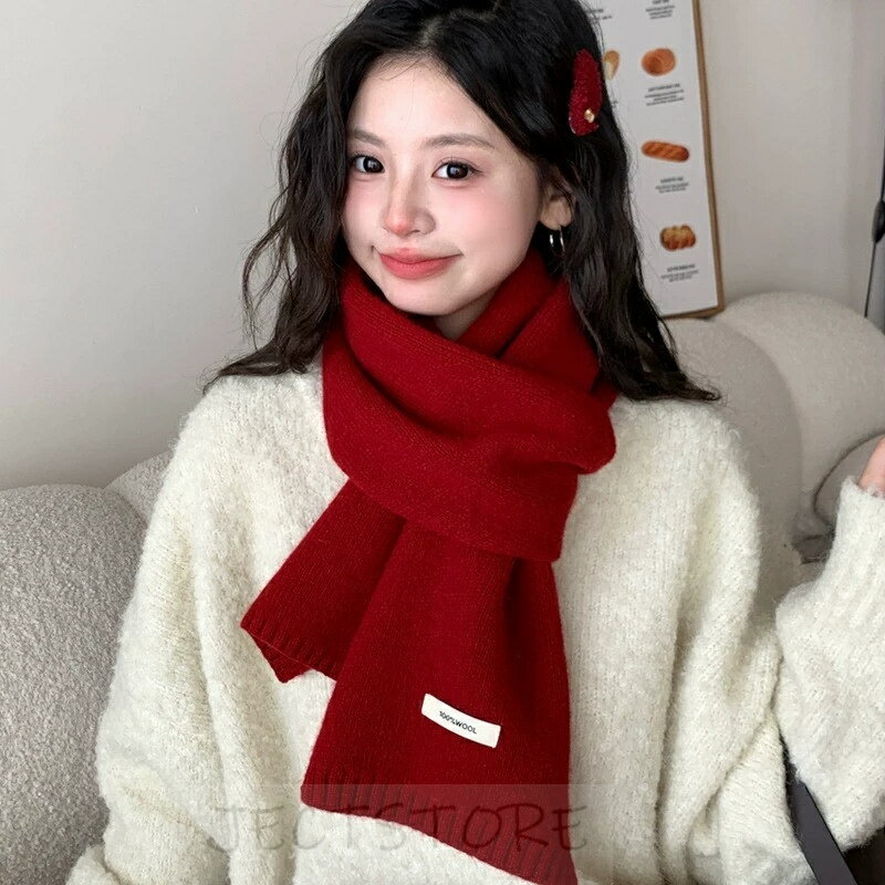 マフラー レディース メンズ オーストラリア産 ウール100% 羊毛 上質 保温 防寒 ニット 暖かい 柔らかい 肌触り ペア 冬物 秋冬 レッド ベーシック カジュアル