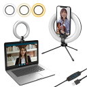 LEDリングライト 直径16cm 6.3インチ 女優ライト パソコンライト スマホホルダー ミニ三脚付属 リモコン 3段階調色 10段階調光 USB給電 クランプ式 360°可動 動画撮影 撮影照明 リモートワーク WE