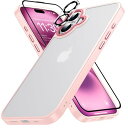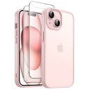 JETech 3 in 1 iPhone 15 6.1 インチ用 マットケース 2枚強化ガラスフィルム付き 半透明 つや消し 耐衝撃スマホカバー (ピンク)