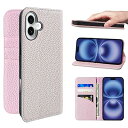 iPhone 16 ケース 本革 手帳型 カバー 耐衝撃 保護 カバー 本革 内蔵マグネッ RFIDト 財布型 携帯カバー カードポケット スタンド機能 - グレー/ピンク