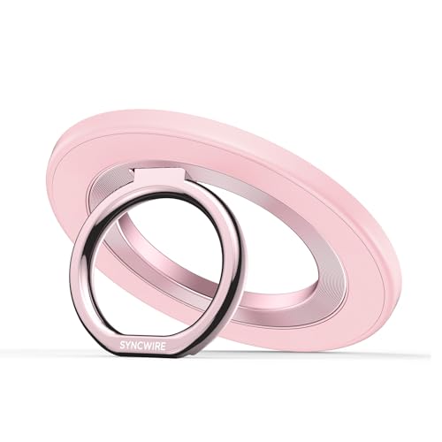 Syncwire MagSafe対応 スマホリング 両面磁力 360度回転 マグセーフリング 超薄型 マグネット式 バンカーリング 超強力 角度調節可能 簡単着脱 スマホスタンド機能 iPhone 15/14/13/12 iPhone全シリーズに対応 アンドロイド全機種対応 2枚メタルリング付 (ピンク)