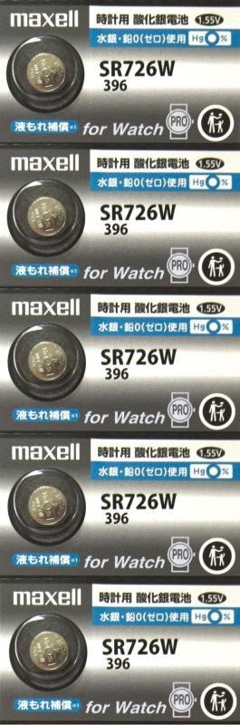 5個 マクセル maxell ボタン電池 1.55V 時計 酸化銀電池 SR726W 396酸化銀電池
