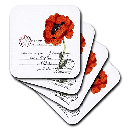 【中古】【未使用・未開封品】(set-of-4-Soft) - 3dRose Carte Postale Vintage Poppy - Soft Coasters, Set of 4 (cst_178830_1)