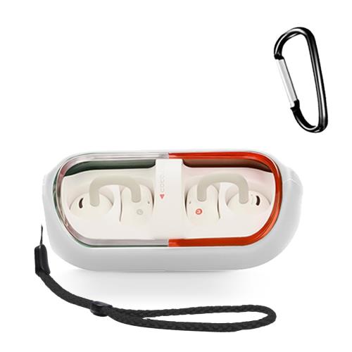 For 水月雨 MoonDrop Space Travel 用 ケース カバー 【NOUKAJU】 ワイヤ レス イヤーホン シリコン 保護ケース (カラビナ付き+ストラップ付き ) 落下防止 キズ防止 耐衝撃 装着充電可能 防水 防塵 (ホワイト)