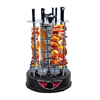 【中古】無煙自動回転ケバブマシン、電動垂直ケバブマシン、360°自動回転、30分タイマー機能、家族でのディナー、屋内バーベキューに最適