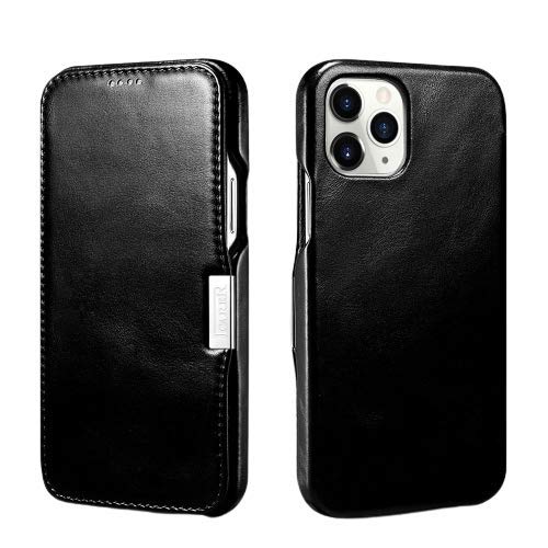 iPhone11 Pro 手帳型ケース 5.8インチ ICARER 本革 牛革 ビンテージレザー カバー マグネットタイプ ブラック 日本アイフォン