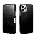 iPhone12 Pro Max 手帳型ケース 6.7インチ ICARER 本革 牛革 ビンテージレザー カバー マグネットタイプ ブラック 日本アイフォン カバー