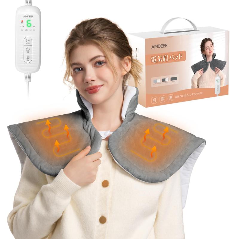 Amdeer 電気肩パッド 電気肩当て 8段階温度切替 6段階切タイマー ふわふわ 高級フランネル生地 加熱 肩当て 自宅 オフィス用 スポーツ観戦 省エネ 暖房器具 洗える 電気パッド 防臭 ダニ退治