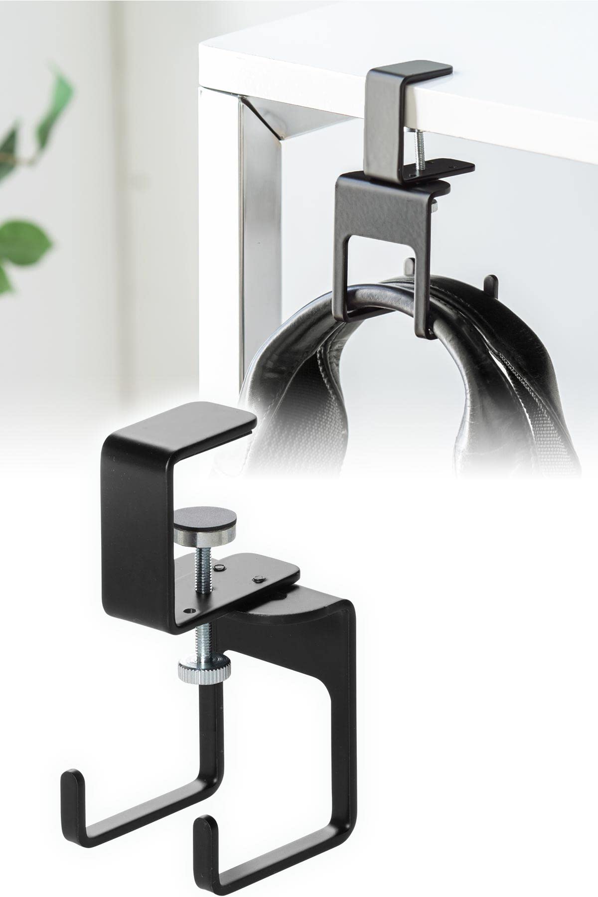 サンワダイレクト デスク フック クランプ ヘッドホンハンガー 耐荷重3kg スチール製 フック2本 ブラック 200-CB033BK
