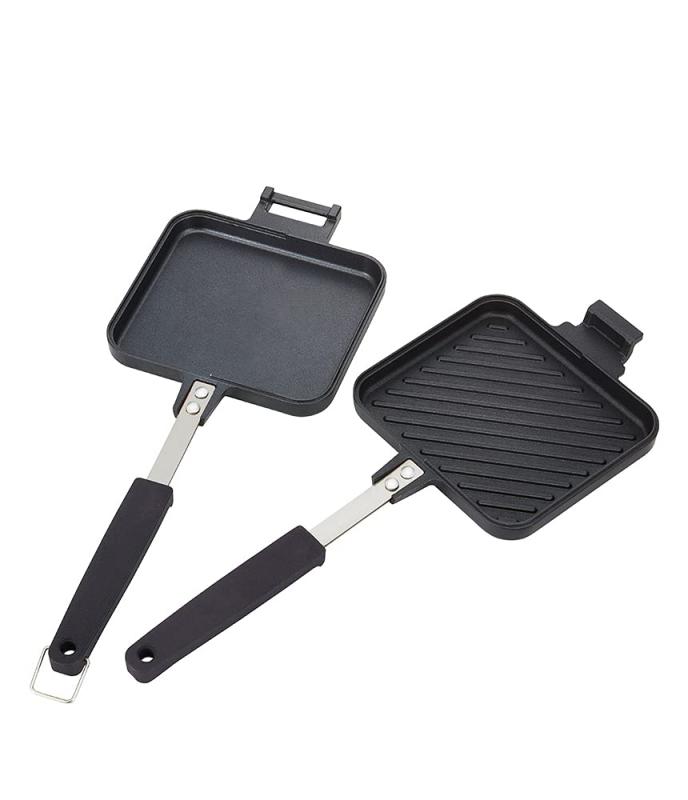 イワタニ Iwatani 岩谷 ホットサンドグリル カセットこんろ専用 CB-P-HSG2つのフライパンにもなるホットサンドグリル】カセットこんろ専用「ホットサンドグリル」は、セパレート式でホットサンドグリルとしてもミニフライパンとしてもご使用いただけて多彩なメニューが楽しめます【波型面とフラット面のセパレート式プレートを採用】食パンがぴったりフィットするサイズで、ホットサンドに限らず焼肉ビビンバやフレンチトーストなど多彩なメニューが作れます。それぞれのグリルを使って、さまざまな料理を楽しめますし、洗う際もすみずみまでしっかり洗えて非常に便利です。【注意】[付属品:朝食・おやつ・夜食など多彩なオリジナルレシピ付き]。本品はイワタニカセットフー専用。小型のカセットこんろ(プチスリムII・タフまるJr.)にも対応。【仕様】[型番]CB-P-HSG[容量]36L[本体サイズ]約幅141×奥行354×高さ50mm[化粧箱サイズ]145×45×390mm[本体重量]約570g。[化粧箱重量]約660g[生産国]中国。【材質】[本体]アルミニウム合金[ハンドル]ステンレス SUS304[ハンドル持ち手]フェノール樹脂[リング] ステンレス SUS304【内側塗装】フッ素樹脂加工【側面塗装】焼付塗装【安全設計】カセットコンロのごとくにはまる安全設計。