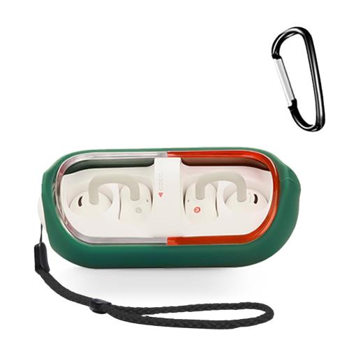 For 水月雨 MOONDROP PILL 用 ケース 全面保護カバー シリコンケース HUKWIMOカラビナ付き 耐衝撃 防水 防塵 装着充電可能 全面保護 キズ防止 MOONDROP PILL 対応インイヤーヘッドホン用ヘッドホンケース[グリーン 绿]