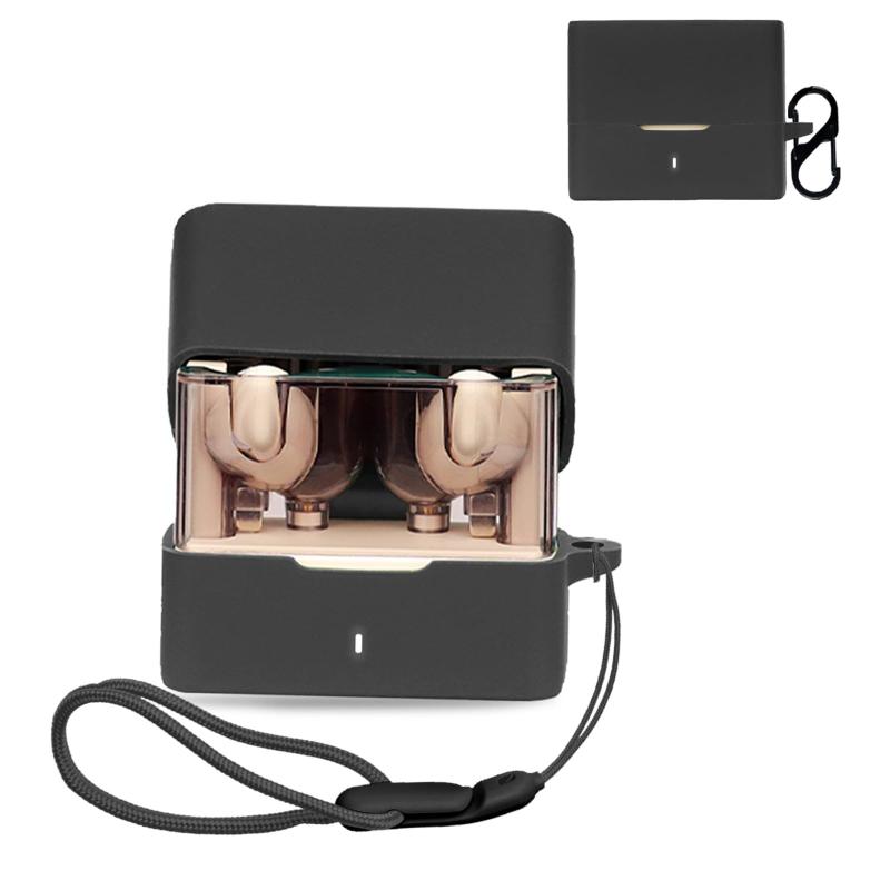 For 水月雨 MOONDROP PILL 用 ケース 全面保護カバー シリコンケース HUKWIMOカラビナ付き 耐衝撃 防水 防塵 装着充電可能 全面保護 キズ防止 MOONDROP PILL 対応インイヤーヘッドホン用ヘッドホンケース[ブラック 黒]