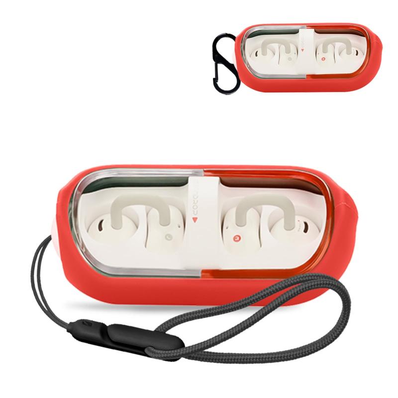 For 水月雨 MOONDROP PILL 用 ケース カバー 【NOUKAJU】 ワイヤレス イヤーホン シリコン 保護ケース (カラビナ付き+ストラップ付き ) 落下防止 キズ防止 耐衝撃 装着充電可能 防水 防塵 (レッド)