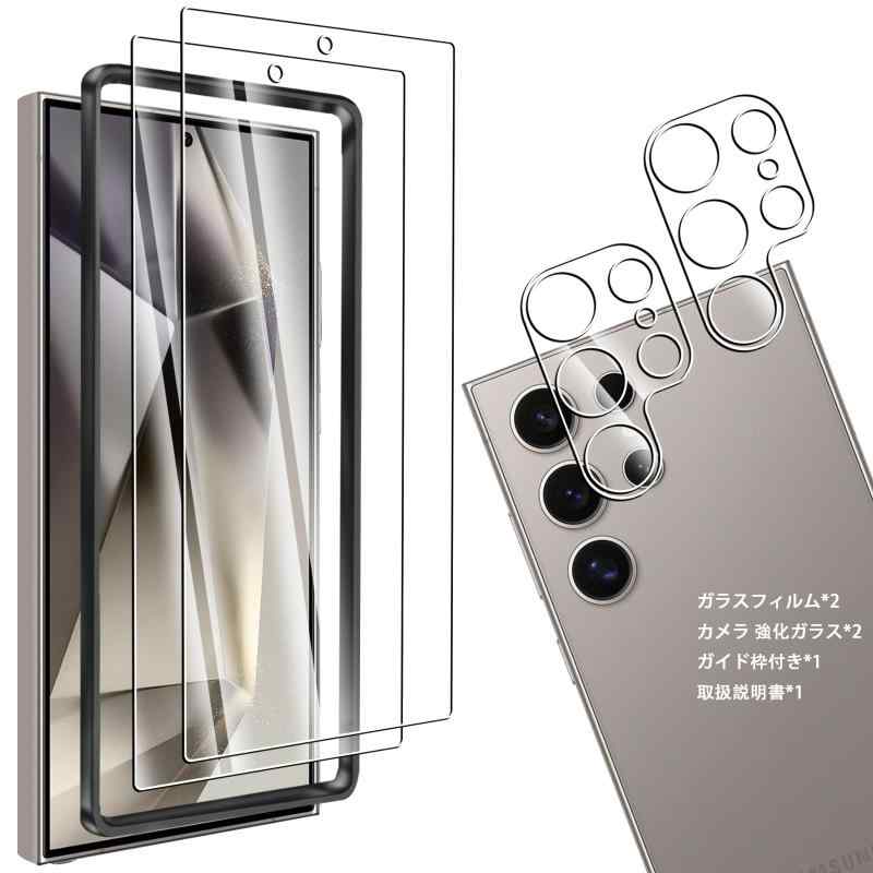 対応 Galaxy S25 Ultra ガラスフィルム 2枚 + 対応 Galaxy S25 Ultra 5G レンズ保護フィルム 2枚 対応 Galaxy S25 Ultra 用のフィルム 液晶保護フィルム 全面保護 耐衝撃 極薄 気泡ゼロ 指紋防止【