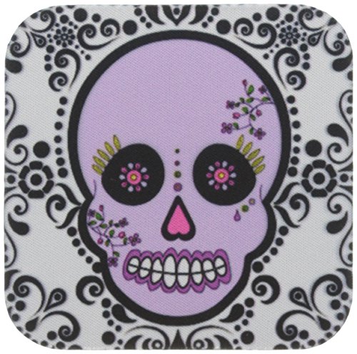 【中古】【未使用・未開封品】3dRose cst_28868_2 Day of The Dead Skull Dia De Los Muertos Sugar Skull Purple White Black Scroll Design-Soft Coasters, Set of 8 by 3dR