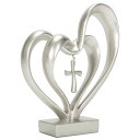 【中古】【未使用・未開封品】Marriage Takes Three Matte Silver Finish 33cm Cross in Middle of Hearts Tabletopper