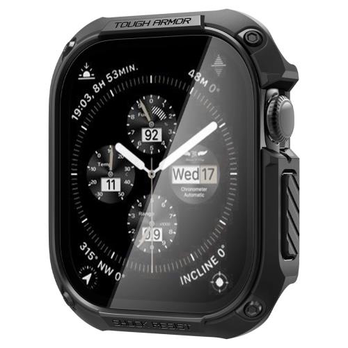 Spigen Apple Watch 10 ケース 46mm AppleWatch10 対応 ガラス 一体型 米軍MIL規格取得 画面保護 耐衝撃 落下 衝撃 吸収 すり傷 防止 保護カバー タフ アーマー (ブラック)
