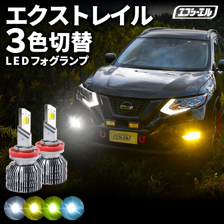 【11日01時59分まで17,900円→14,320円】 fcl LEDフォグランプ 3色切り替え LED フォグランプ 後付け 車検対応 エクストレイル T/NT/HT/HNT32 H29.6〜R4.6 H8 イエロー ライムイエロー ホワイト フロスティブルー 12V