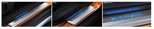 『エクストレイル』 純正 T32 NT32 HT32 HNT32 キッキングプレート LED、青色発光 パーツ 日産純正部品 スカッフプレート ステップ 保護 オプション アクセサリー 用品